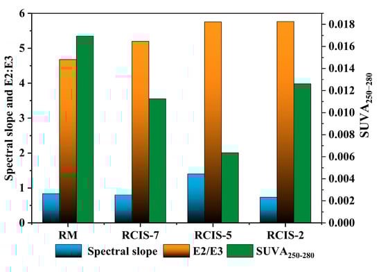 Changes in Spectral slopes, E2/E3 and SUVA250–280 among RM and different-term RCIS.