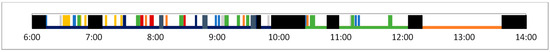 The normal workflow is presented in black, and disruptions caused by the assigned machines are presented in other colors (according to the map legend).