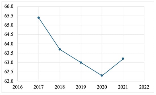 Prevalence of food insecurity in South Sudan (%). Source: World Bank Open Data (https://data.worldbank.org/indicator/SN.ITK.SVFI.ZS?locations=ZF, accessed on 19 April 2024).