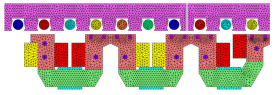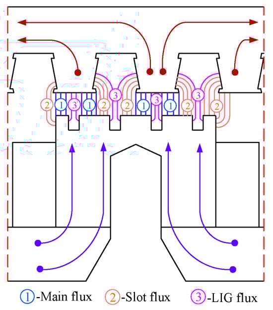 Combining Equations (9), (10), and (12), the magnetic fluxes ϕ and ϕe and inductive current Ipi can be solved, and then all the magnetic flux vectors can be obtained. Based on the virtual work principle, the magnetic force of each magnet pole can be calculated using the following formula.