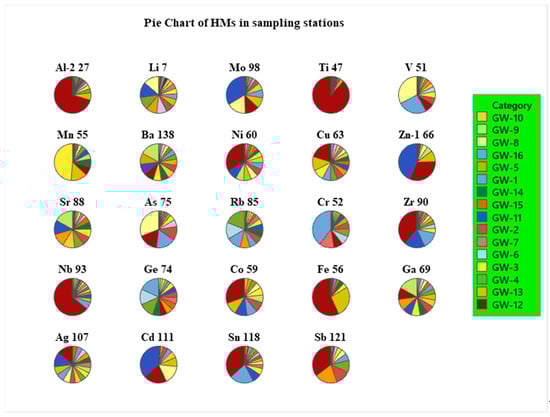 Pie chart of heavy metals sampling stations.