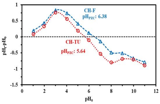 Effect of pHpzc of CH-F and CH-TU using 0.1 M NaCl as a background salt.