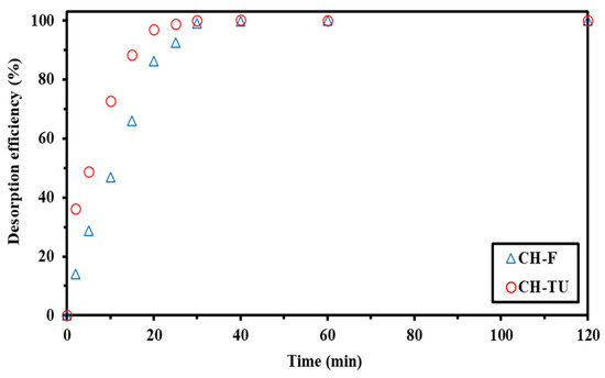 It is clear that the maximum desorption time was around 30 and 15 min for CH-F and CH-TU, respectively, which was sufficient for complete elution.