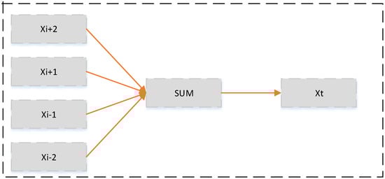 The CBOW model mainly predicts the central word through the surrounding context words. The model diagram is shown in Figure 5. If the central word is given and the window size is set to five, the central word is predicted through the four context words . The specific calculation formula of this model is as follows: