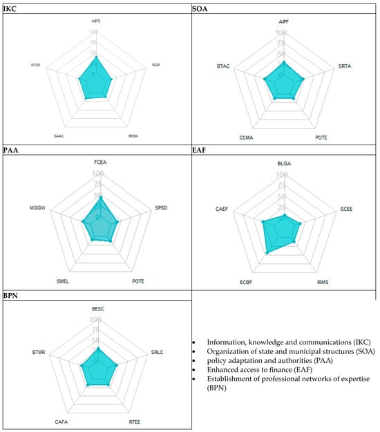In a study by Preston et al. [36], adaptation is first and foremost “local”, and the specificity of the adaptation context is indisputable. Although the effects of climate change are felt at the local level, and the local level is well placed to adapt to climate change, local action needs to be framed and facilitated across different levels or spheres of government. Adaptation to climate change, as a political issue, is by necessity cross-cutting, multidisciplinary, and multi-sectoral, and requires significant degrees of collaboration and cooperation to be successful. Governance structures and leadership for climate change adaptation vary considerably between levels and spheres of government around the world, but problems of intergovernmental coordination are common [37].