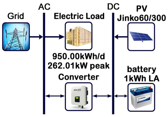 | Parameter | Grid Only | Grid with Batteries and Converter | Grid with PV and Converter | Grid with PV, Converter, and Batteries |