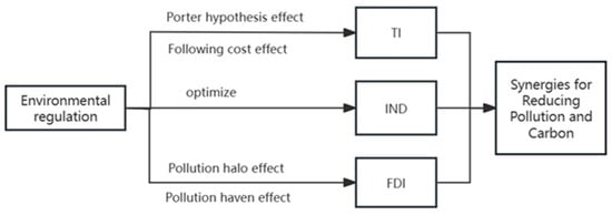 36]. When the ERs of a place are relatively strict, the industrial structure of the place will continue to upgrade; meanwhile, they will also lead to the transfer of polluting estates, forcing enterprises to undergo low-carbon transformation to a certain extent [
