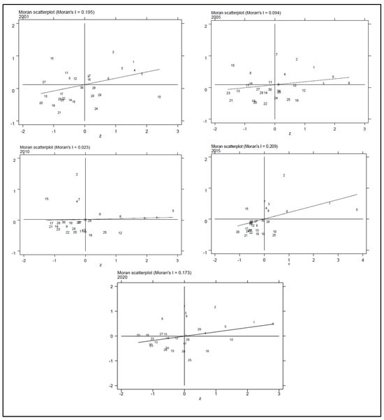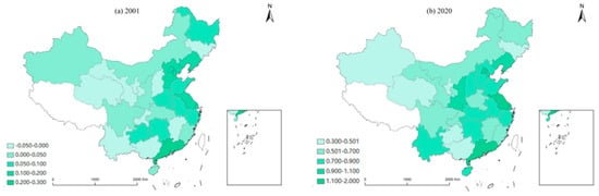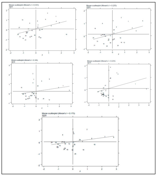 34]. By studying the spatial correlation of China’s ERs, it has been found that regulations in a certain area not only affect the emissions of local environmental pollutants but also have spillover effects on the emissions of environmental pollutants in neighboring areas [