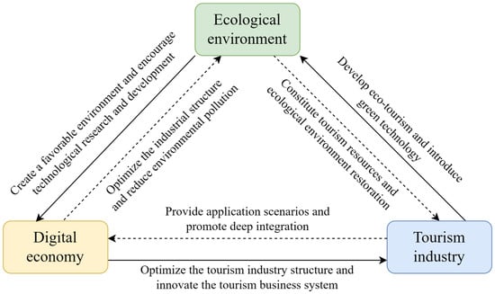 The coupling mechanism of the digital economy, the tourism industry. and the ecological environment.