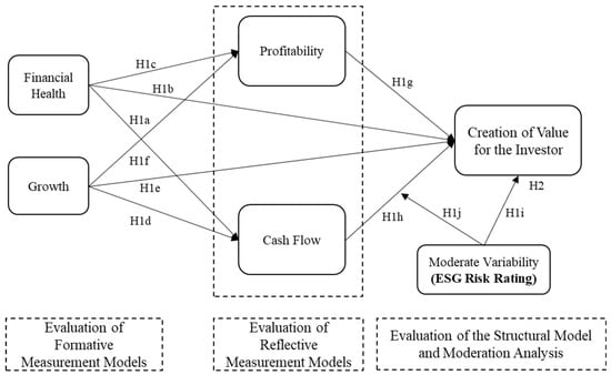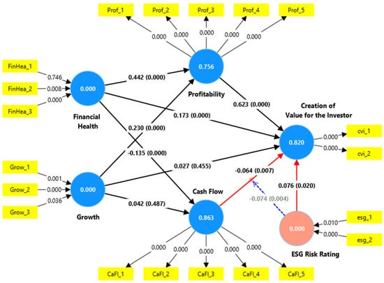 It is crucial to emphasize that external factors such as high inflation, elevated interest rates, and strict regulatory policies are already reflected in the 2023 financial indicator results of the latent variables, particularly in the cash flow indicators. These factors directly influence operating costs, access to financing, and investment decisions, affecting companies’ cash flows. Therefore, incorporating these factors into the analysis provides a more realistic and comprehensive view of the impact of ESG risk ratings on investor value creation.
