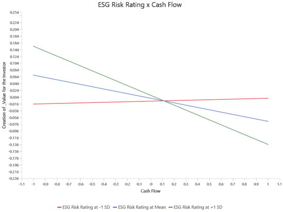 The ESG risk rating moderates the relationship between cash flow and Investor Value Creation negatively. Specifically, as the ESG risk rating increases, indicating higher risks, the ability of cash flow to generate value for the investor decreases, reflecting an adverse impact of ESG risks on the effectiveness of cash flow in value creation.