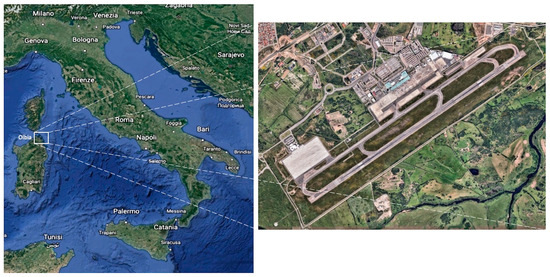 Location of the Costa Smeralda Airport—Olbia (Google Earth).