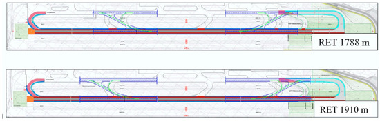 Therefore, a decision was made to design one or more RETs because this represents an intervention that does not require expanding the size of the airport. As stated by O’Flynn S. [52], this operation helps reduce ROT, which is one of the most critical factors influencing airside capacity.