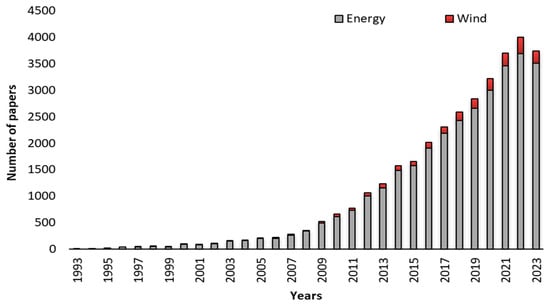 Comparison of the publications in the WoS database (Keywords: energy and life cycle assessment; wind and life cycle assessment).