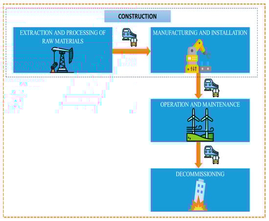 As shown in Figure 4, the scope of the study is from cradle to grave, and it includes the following stages: