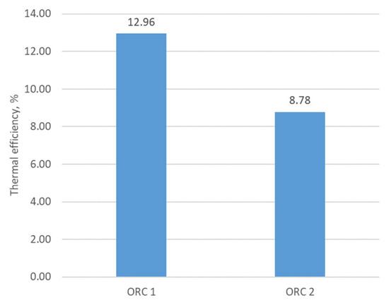 The thermal efficiencies of ORC cycles were calculated using the following formula: