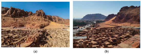 (a,b) View of Al-Ula’s natural boundaries [27].