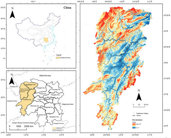 - Li, B.; Yang, B.; Tao, Q.H.; Zuo, Q.; Wu, L.P.; Gao, H.; Liu, Y.X.; Li, W. Research of hunan province traditional villages in spatial pattern and its influencing factors. J. Surv. Mapp. Sci. 2021, 46, 150–157. [Google Scholar] [CrossRef]