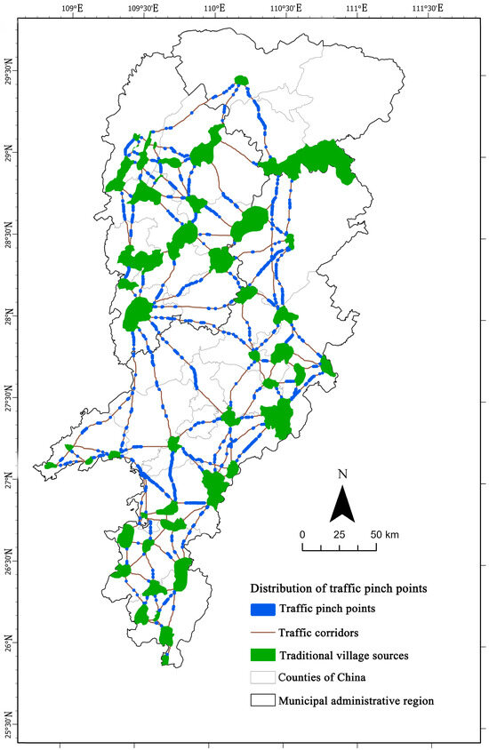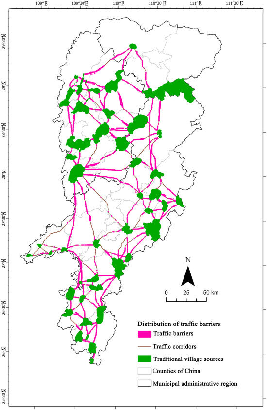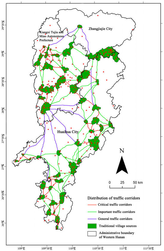 As an important channel for the circulation of elements, energy, and materials among various sources, a traffic corridor can connect relatively dispersed and independent traditional villages. This is of great significance for enhancing the integrity and connectivity of traditional villages in the study area.