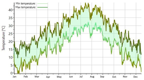 The study area is characterized by very low temperatures in summer and very high temperatures in winter, as shown in Figure 3: