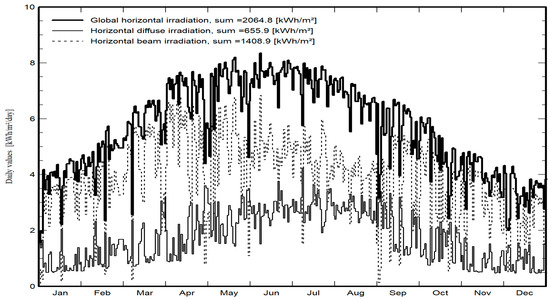 The principal source of the Earth’s natural energy is solar radiation. This has a crucial influence on a multitude of phenomena, both natural and unnatural, as well as on various aspects of human life and society. The climate is an obvious example, but the impact extends to many areas such as plant growth, human health, building design and energy production. The following diagram in Figure 7 shows the variation in solar irradiance.