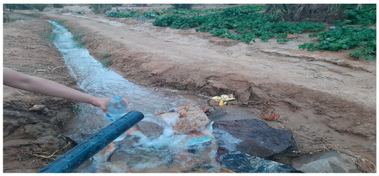 Before installing the maintenance system: cooling and cleaning photovoltaic panels, which is designed to increase their yield, it is crucial to assess the quality of the water used to clean and cool the panels. For this reason, we carried out an analysis of the water used to cool the photovoltaic panels to evaluate the probability of deposition of salts and residues which cause wear and reduce the absorption of solar radiation. We took a water sample from the well as shown in Figure 10.