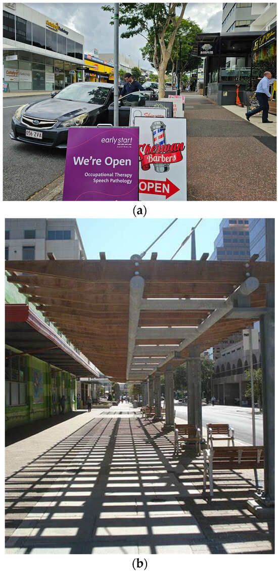 All policies and projects require detailed technical evaluation against general goals and more specific objectives. Recommendations are made to decision makers in the summary form of a business case. Currently, the main area of research is the costs and benefits associated with the modification of existing infrastructure []. A study by Maheshwari and Axhausen [] investigated how the technological shift in transport towards AVs might impact on the sustainability of cities, or otherwise, based on a literature review. There are potential cost savings by narrowing vehicle lanes on roads and in parking lots. As the needs for safe and efficient operations of AVs may differ in at least some aspects from the needs of other road users, including pedestrians, Austroads [] undertook economic assessments on several potential physical infrastructure improvements that appear valuable for supporting the AV uptake. The report concluded that only traffic signals, signage, and line markings had strong B/C ratios of greater than 3.4, whereas the implementation of remote AV parking facilities and mobility hubs had a marginal B/C ratio of 1.2. Further research is in progress, but we have not been able to find data on the economic costs and benefits of any entire precinct transformation.