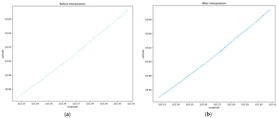 The changes before and after the abnormal interpolation operation of ship data are as follows, as shown in Figure 4. From the figure, it can be seen that the trajectory curve after processing is smoother and conforms to the motion curve of the ship under normal sailing condition.
