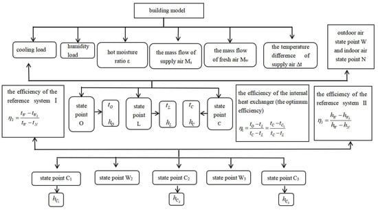 According to the above literature review, the VCR unit is the most widely used central air-conditioning system in our daily lives. The installation of energy-recovery devices is an effective way to improve the efficiency of conventional VCR systems. However, it can be found that most of the studies on energy-recovery devices mainly focus on exhaust air heat recovery. Energy-recovery devices with internal heat exchangers have not been seen in the scope of the studied literature. Therefore, this paper proposes a new energy-saving air-conditioning system using an internal heat exchanger, and a two-story high-grade shopping mall building with an area of 14,256 m2 in Nanjing, China, is chosen as a case study for our analysis. Based on the first law of thermodynamics, the maximum energy-saving potential of the proposed new energy-efficient air-conditioning system is theoretically analyzed, and the optimum efficiency of the internal heat exchanger at different indoor and outdoor parameters is investigated when the proposed system has the maximum energy savings. On this basis, the influence of indoor and outdoor parameters on the energy efficiency of the proposed system is explored from the point of view of the energy-saving amount and energy-saving rate compared with the conventional VCR system. The existing literature focuses only on conventional VCR systems with sensible heat exchangers and conventional VCR systems with total heat exchangers. Therefore, this paper discusses the effect of indoor and outdoor parameters and fresh-air ratio on the energy efficiency of the three systems. Finally, the energy-saving potential and advantages of the new system are obtained by comparison. In the future, the new energy-saving air-conditioning system proposed in this paper can be involved in the energy management of the active distribution network of office buildings [].