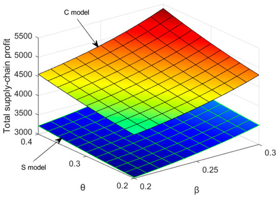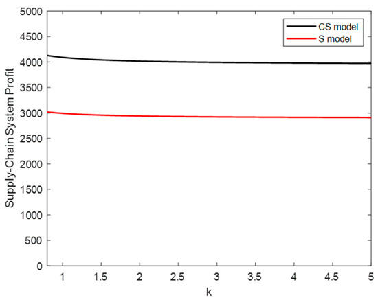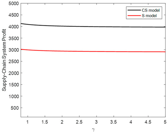 The impact of on the supply-chain system profit in the CS model and the S model.