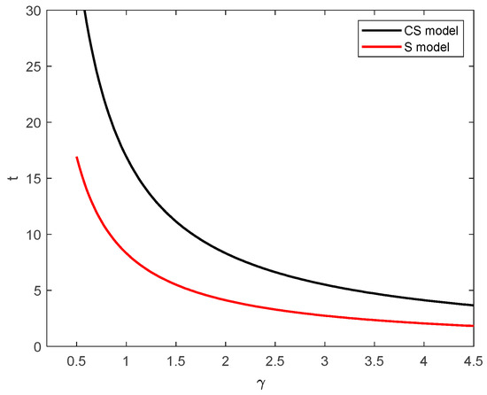 Different product quality levels will affect consumers’ choices, and the supplier can improve the quality of electronic products by introducing new equipment. So, the relationship between product quality cost and product quality level can be reflected as a quantitative parameter, with reference to Cai et al. [68]. The relationship expression is , where is the product cost coefficient, , and the product quality cost is borne by the supplier alone.