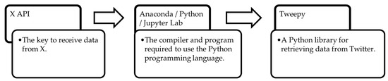To create a rich data source in the research, it was considered appropriate to choose a metropolitan municipality. This municipality was preferred because it is the capital of Turkey, and the “City of Mayor” award was given to the Ankara Metropolitan Municipality in 2021 thanks to its service quality. In the research, the data sent to @ankarabbld and @mavimasa X accounts between 1 January 2016 and 30 April 2023 were collected to provide a rich and long-term dataset. Figure 7 shows the data collection process.