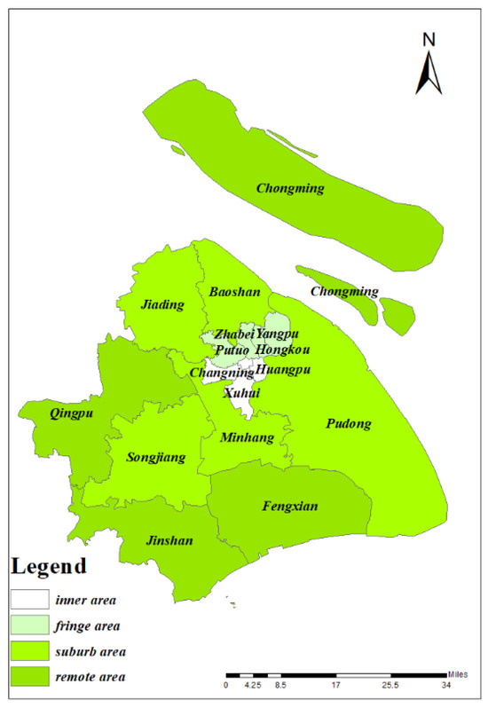 Second, the population structure reflects the important social feature of urban areas and directly influences the demand and supply of public services [34]. In metro cities such as Shanghai, the population in the central urban areas is decreasing while the population in the suburbs is growing rapidly, while the migrant population is predominantly located in the suburbs, closely coupled with the distribution of the manufacturing industry [35]. Due to restrictions imposed by the Hukou policy on public service access for migrants, their demand for public services is often overlooked by local governments [36]. As a result, the actual demand for public services has not been effectively and fully responded to in public resource distribution and other urban policies [34]. As a result, the imbalance between supply and demand for public services is more pronounced in urban areas with a high proportion of migrant populations, adversely affecting the profitability of public investments. Therefore, we propose hypothesis 3b.