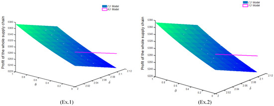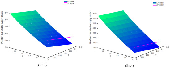 Substituting Equations (A3) and (A4) and (A6) into (3) and (4), we can obtain the optimal manufacturer’s profit , the optimal retailer’s profit , and the whole SC’s profit [Appendix C.1].