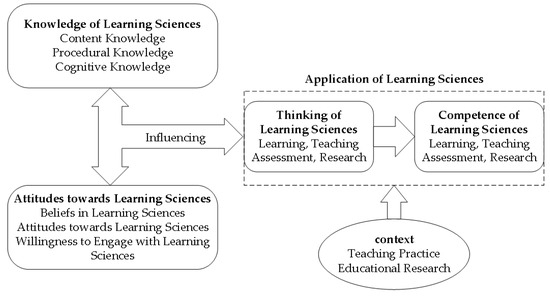 | Attitudes towards Learning Sciences | Beliefs in Learning Sciences | Q28. I am aware of the significance of learning sciences in the context of both teaching practice and research. Q29. I am aware of the advantages and limitations of the development of learning sciences research. | [16,33] |