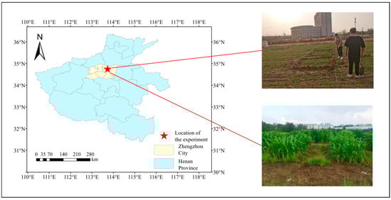 The experimental site is located at the Agricultural Water Conservation and High Efficiency Experiment Field of the North China Institute of Water Resources and Hydropower in the Jinshui District, Zhengzhou City, Henan Province (34°47′ N, 113°46′ E; elevation, 110.4 m) (as shown in Figure 1). This region belongs to a warm temperate continental climate, with an average annual temperature of approximately 14.3 °C and an average annual rainfall of around 640 mm. The annual cumulative sunshine duration is about 2400 h, which is suitable for the cultivation of summer maize. Rainfall is unevenly distributed throughout the year, mainly concentrated from June to September, accounting for 53.3% of the annual rainfall. Irrigation is required during the growing season of summer maize. The experimental area was determined to have sandy loam soil, with a bulk density of 1440 kg/m3, a soil porosity of 40%, and a field water holding capacity of 32%, as measured by experiments.