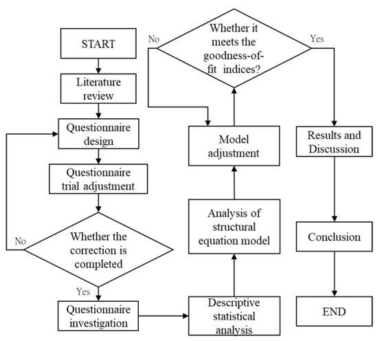 Figure 2 illustrates the research framework of this study. A literature review is conducted to design a questionnaire addressing residents’ satisfaction with public facility services, urban disaster prevention planning, expectations for future development, and residential intentions. Subsequently, the preliminary questionnaire results are subjected to expert review by five scholars for refinement. After the necessary adjustments are made, a formal questionnaire is finalized. Using the snowball sampling method, a survey is administered to residents, and the collected valid responses are subjected to statistical analysis, including descriptive statistics and Structural Equation Modeling (SEM). Finally, the SEM results are examined to explore the impact of satisfaction with sustainable urban disaster prevention planning on residential intentions and its mediating effect on satisfaction with public facility services, providing insights for assessing urban disaster prevention effectiveness.