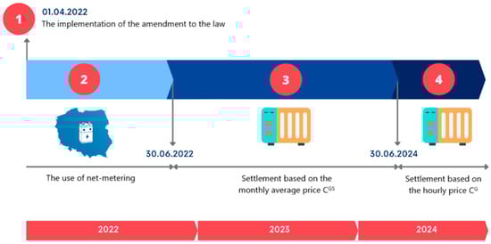 Excluding the transitional period (from 1 April 2022, to 30 June 2022), which aimed to practically implement solutions enabling the use of the net-billing tariff, it can be stated that in Poland, this form of settlement has been mandatory since 1 July 2022. Until mid-2024, the rate at which the prosumer sells electricity in a given month is determined as the averaged value of the market prices applicable in the previous month. This means that the timing of introducing energy into the power grid does not affect the profit from sales. Therefore, the use of an energy storage system during this period will not translate into increased profit from selling electricity.