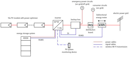 A significant portion of research focuses on economic and financial aspects, which through production forecasting or proper management of installation components’ cooperation, allow for savings in the design or operation stages. Francesco Nicoletti and Piero Bevilacqua [4] addressed the topic of forecasting energy production from photovoltaic installations for the next day, which is increasingly necessary for grid operators and energy communities. The work proposed two computational models based on forward-forward neural networks that determine hourly photovoltaic production. Sergio F. Contreras et al. [5] presented a new method for managing PV micro-installations, treating them as a whole with the ability to provide system services. The authors’ results demonstrate the benefits of planning methodology seen as a comprehensive problem rather than a set of independent tasks. W.C.S. Amorim et al. [6] wrote about selecting energy storage battery systems to smooth out the power from photovoltaic power plants. The case study involves a 1 MW photovoltaic system evaluated based on a yearly work profile including solar radiation intensity and ambient temperature from Goiânia, Brazil. The photovoltaic installation is connected to a 440 V grid linked to a controlled storage system that smooths out 10%/min oscillations. The selection of the storage was conducted in terms of capacity, durability, and the overdimension factor for power and energy. The proposed methodology reduces the storage volume by 57.14% compared to traditional solutions. Luwen Pan and Jiajia Chen [7] tackled the topic of virtual power plants. The research aimed to establish an acceptable pricing strategy to encourage prosumers to participate in demand response. Attention was also paid to the response and arrangement of energy storage configurations in improving sustainable development. Jingang Han et al. [8] proposed a new energy management algorithm from various energy sources. The research aimed to increase the utilization rate of power generation from photovoltaics and extend battery life, thus reducing the operating costs of the base station. The results supported by experimental data indicate a reduction in daily costs from 9.49% to 14.64% depending on the scenario. Ameer A. Kareim Al-Sahlawi et al. [9] conducted simulations for optimizing a hybrid energy system consisting of photovoltaic/wind/battery with an electric vehicle charging station using V2G technology in a grid-connected system. The strategy proposed by the authors for energy management based on rules serves to control and observe the proposed power flow in the system. Jinchao Li et al. [10] proposed shared energy storage as a new form of energy storage. The idea is characterized by flexibility of use and high speed utilization. The article focused on the configuration, operation, and economic benefits of shared storage with photovoltaic installations. The results show that the cost of electricity decreased by 17.16% compared to systems without storage.