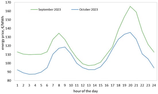 The average daily energy prices for September and October 2023 “Weighted average prices for particular hours” [16].