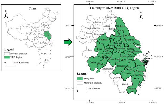 - Wu, J.; Sun, W. Regional Integration and Sustainable Development in the Yangtze River Delta, China: Towards a Conceptual Framework and Research Agenda. Land 2023, 12, 470. [Google Scholar] [CrossRef]