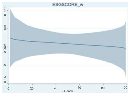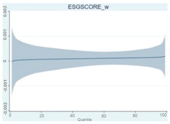 The results indicate that the ESG score had a greater impact on companies with lower capital costs, i.e., the results were heterogeneous. Moreover, the results of the quantile regression were not statistically significant at the 5% level. The estimates were significant at the 10% level for the impact of the ESG score on operational performance between the 39% and 74% quantiles, with an increasing estimated value for the impact, indicating a greater impact for companies with greater operational performance. The estimate was based on the work of Machado and Silva [75], allowing for the analysis of individual fixed effects in quantile regression when estimating quantiles by means of moments.
