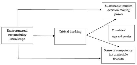 Thus, further investigations to realize mechanisms that may lead to tourism graduates positively contributing to the sustainable development of this developing island state are necessary. The current study aims to (1) examine the effect of sustainability knowledge on tourism and hospitality students’ critical thinking, (2) evaluate the effect of sustainability knowledge on students’ sustainable decision-making abilities and sense of competency in sustainable tourism, and (3) test the mediating role of critical thinking (CT) in the aforementioned relationships (Figure 1).
