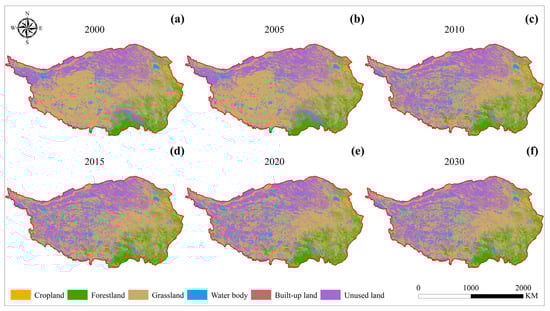 Land use types on the Tibetan Plateau from 2000 to 2030.