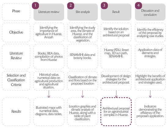 Figure 8 depicts the graphic summarizing the methodological process applied in the research. It is divided into four stages, starting with the information review phase, where the importance of the topic is identified through a review of historical and qualitative bibliographic information, supported by photographs. In the second phase, it is crucial to understand the existing physical context in which the project is proposed. The subsequent phase presents the outcome, and the final architectural proposal, and the final stage involves discussion and conclusion.