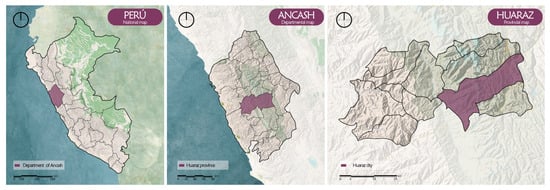 The complex proposed in this research is located in the city of Huaraz, the capital of the Ancash department, which belongs to the province of the same name with an area of 2492.91 square kilometers. It comprises 12 districts, and this city is part of the Callejón de Huaylas subsystem, consisting of the provinces of Recuay, Huaylas-Caraz, Yungay, and Carhuaz. Ancash has 20 provinces and 166 districts [17,31] (Figure 9).