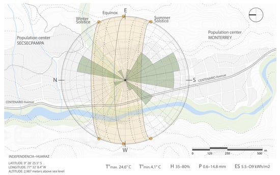The altitude of the Ancash territory ranges from 2000 m above sea level (masl) to 6746 masl, with the capital city Huaraz situated at 2987 masl, at a latitude of 9°28′25.5″ S and a longitude of 77°32′8.4″ W. Due to its altitude and the presence of the Cordillera Blanca, Huaraz experiences a cold climate throughout the year. From May to November, the average comfortable temperature reaches 24 °C. Being in the high Andean zone, Huaraz has low humidity levels, resulting in distinct temperature changes between day and night. Rainfall occurs year-round, with higher intensity from January to March and decreasing in July [31,32].