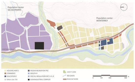 According to the Urban Development Plan (UDP), the area where the project is located is regulated as a Special Regulation Zone (SRZ) ZRE12 A-B. These zones encompass urban areas and urban expansion areas, whether developed or undeveloped, that have particular characteristics related to physical, environmental, social, or economic aspects. They are subject to urban development plans aimed at maintaining or enhancing their urban and environmental development processes [34].