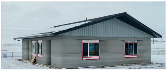 Based on the site visit and conversations with the project staff, the 3DP buildings’ walls are insulated with R32 to deal with the cold climate. This insulation rating is above the Canadian building codes guideline of R20. Achieving this level of insulation using traditional construction methods requires the frame to be a 2 × 6 construction, adding cost over 2 × 4 construction; this is not the case for 3DP houses as they lack in-wall cross members (studs). Additional advantages of 3DP houses are that the insulation is not interrupted by the studs at regular intervals as seen in traditional stick-frame houses, better insulating the structure.