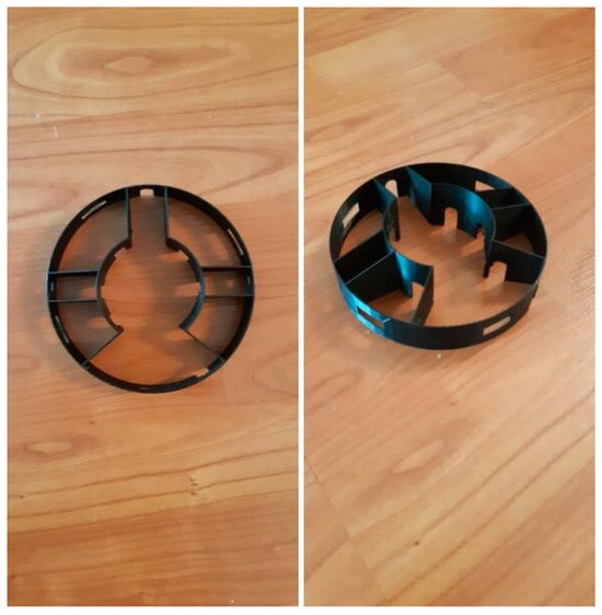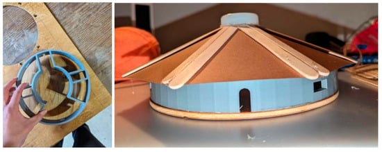 Figure 11) using SolidWorks (version 2023); the second prototype was printed in plastic by a better-quality 3D printer. It has thicker walls, and it has a 20 cm diameter. Since this prototype satisfied our needs for the official design, we handmade a roof that fits it, and we added a wood floor to it as well.